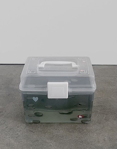 Untitled (2508), 2025, Resin, dye, stickers and quarters, 7 x 9 x 6.5 in